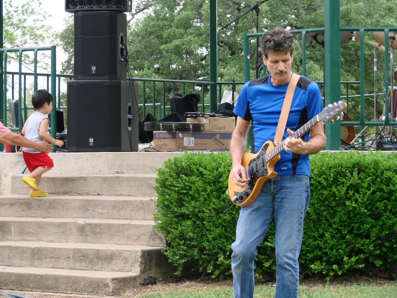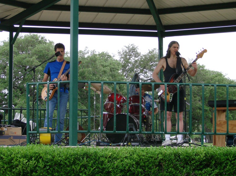 This was our third time to play in public. Had a line of rainshowers come through just before we set up so didn't have time for a sound check. Rodger played synthesizer on several songs this time.