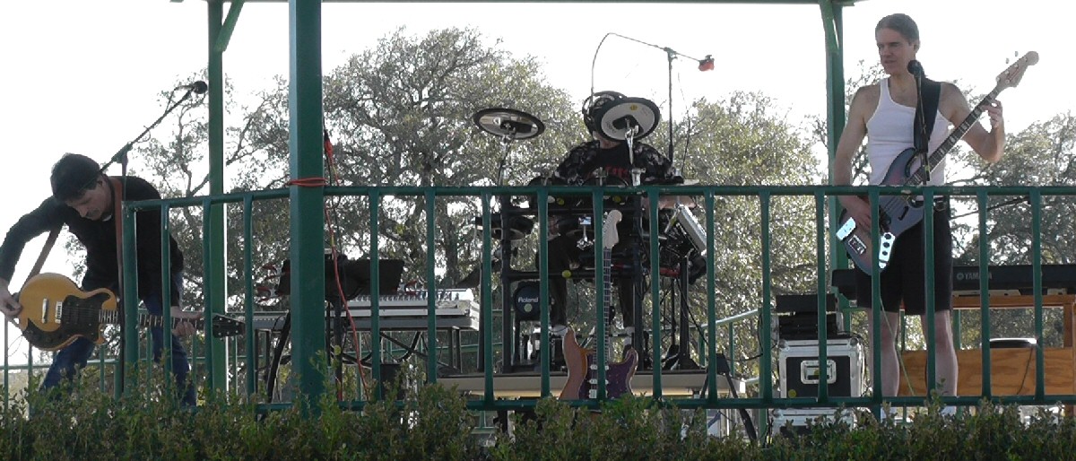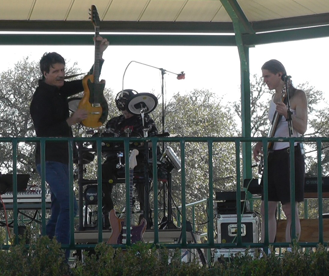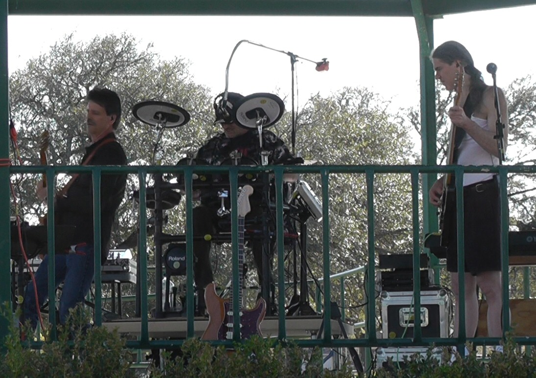 Sunday, March 30, 2014 This was our first performance of the 2014 season at the Gazebo in the San Gabriel Park in Georgetown, TX. We played from 4:30 pm to 8:00 pm. The weather was pleasant but it was quite windy. There were several people flying kites in the park but the microphones picked up the wind noise. We had a light turnout. Mark M. came for the first time. John M. and Bruce D. came from Ringdale. Anthony brought his mom and friends Tammy and Nathan. Tom's brother, Robert, was there. John W. and Sadie, recently back from a Mexico trip, we there. We took several breaks because Jeff was tiring quickly due to his chemotherapy treatments. We took a long supper break for Rodger. We introduced a new original song, That's What She Said and played about 20 songs. Anthony Drake and Steve Whitfield each played guitars and sang solo during breaks.